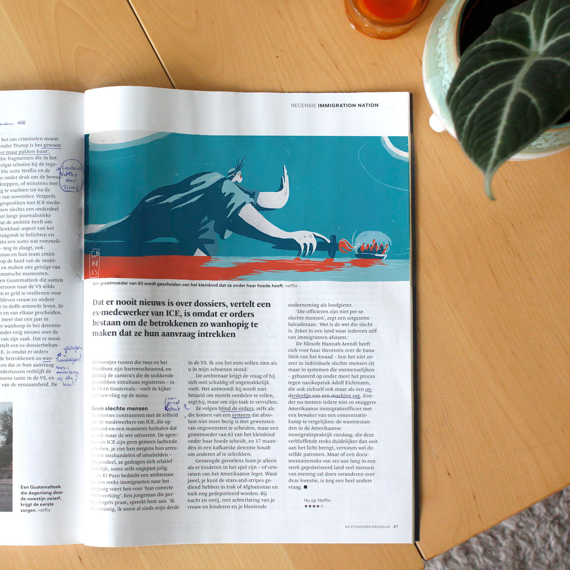 Editorial mockup for an article in De Standaard about Immigration Nation, a documentary on immigration in the US that highlights a lot of the problems within ICE.